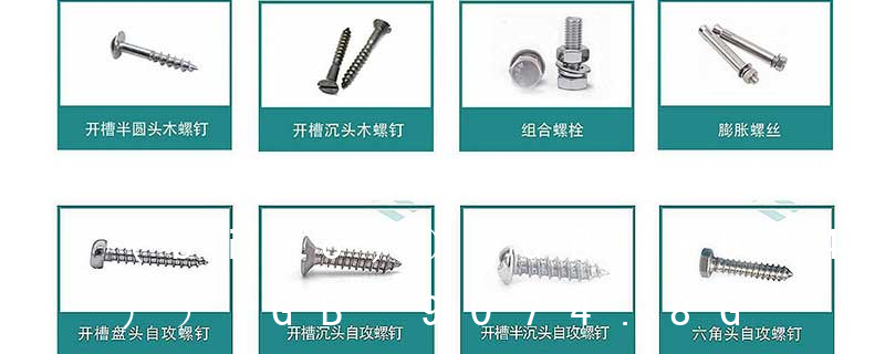 1.GB/T15856.4-1995六角法蘭面自鉆自攻螺釘 2.GB/T78-1985內(nèi)六角錐端緊定螺釘 3.GB/T79-1985內(nèi)六角圓柱端緊定螺釘 4.GB/T837-1988開槽盤頭不脫出螺釘 5.GB/T84-1988方頭凹端緊定螺釘 6.GB/T9074.3-1988十字槽盤頭螺釘和彈簧墊圈組合件 7.GB/T9074.7-1988十字槽小盤頭螺釘和彈簧墊圈 擴展資料 一個螺釘只配一個彈墊或只配一個平墊,或者還可以只配一個花齒的二組合件。組合螺釘國標(biāo)號用GB9074表示。常用的十字槽小盤頭三組合螺釘國標(biāo)號是GB9074.8。 組合螺釘?shù)牟馁|(zhì)有分為鐵的和不銹鋼的。 鋼結(jié)構(gòu)用高強度大六角頭螺栓組合螺釘,主要用于鐵路和公路橋梁,鍋爐鋼結(jié)構(gòu),工業(yè)廠房,高層民