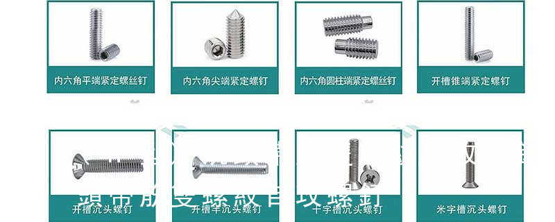 1)開槽普通螺釘多用于較小零件的連接。它有盤頭螺釘、圓柱頭螺釘、半沉頭螺釘和沉頭螺釘。盤頭螺釘和圓柱頭螺釘?shù)尼旑^強(qiáng)度較高,瑁在普通的部件連接上;半沉頭螺釘?shù)念^部呈弧形,安裝后它的頂端略外露,且美觀光滑,一般
