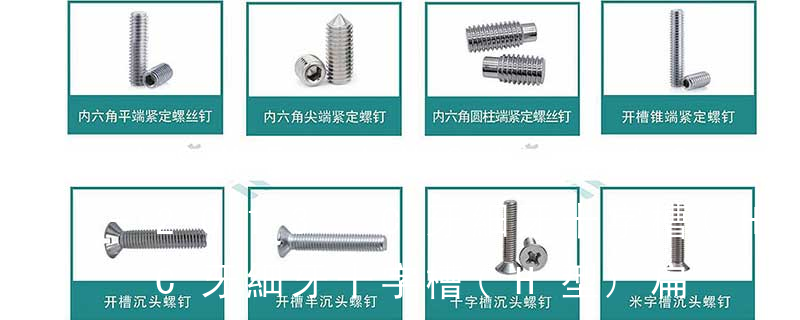 自切自攻螺釘有以下幾種型式:十字槽盤頭自切自攻螺釘,十字槽沉頭自切自攻螺釘。十字槽半沉頭自切自攻螺釘,六角頭自切自攻螺釘。3、自擠自攻螺釘(自攻鎖緊螺釘)自擠自攻螺釘的螺紋一般為機螺紋,很少采用自攻螺紋。在扳擰