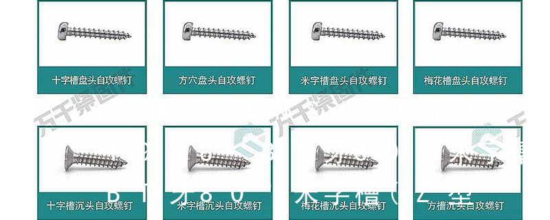 十字槽盤頭機(jī)絲牙螺釘 采用的是GB818 Cross recessed pan head screws十字槽傘頭機(jī)絲牙螺釘采用的是GB67 Cross recessed truss head screw十字槽傘頭三角牙螺釘采用的是GB867 Cross recessed truss head triangular screw十字槽沉頭機(jī)絲 (鐵板牙自攻螺絲) B-2: Plastic Tapping Screw. (塑膠用,自攻螺絲) C: Wooden Screw : 木工螺絲 D: Drywall Screw :水泥墻螺絲 E: Self Drilling Screws鉆尾螺絲(不銹鋼鉆尾螺絲,復(fù)合材料鉆尾螺絲) F:膨脹螺絲,四片膨脹螺絲又